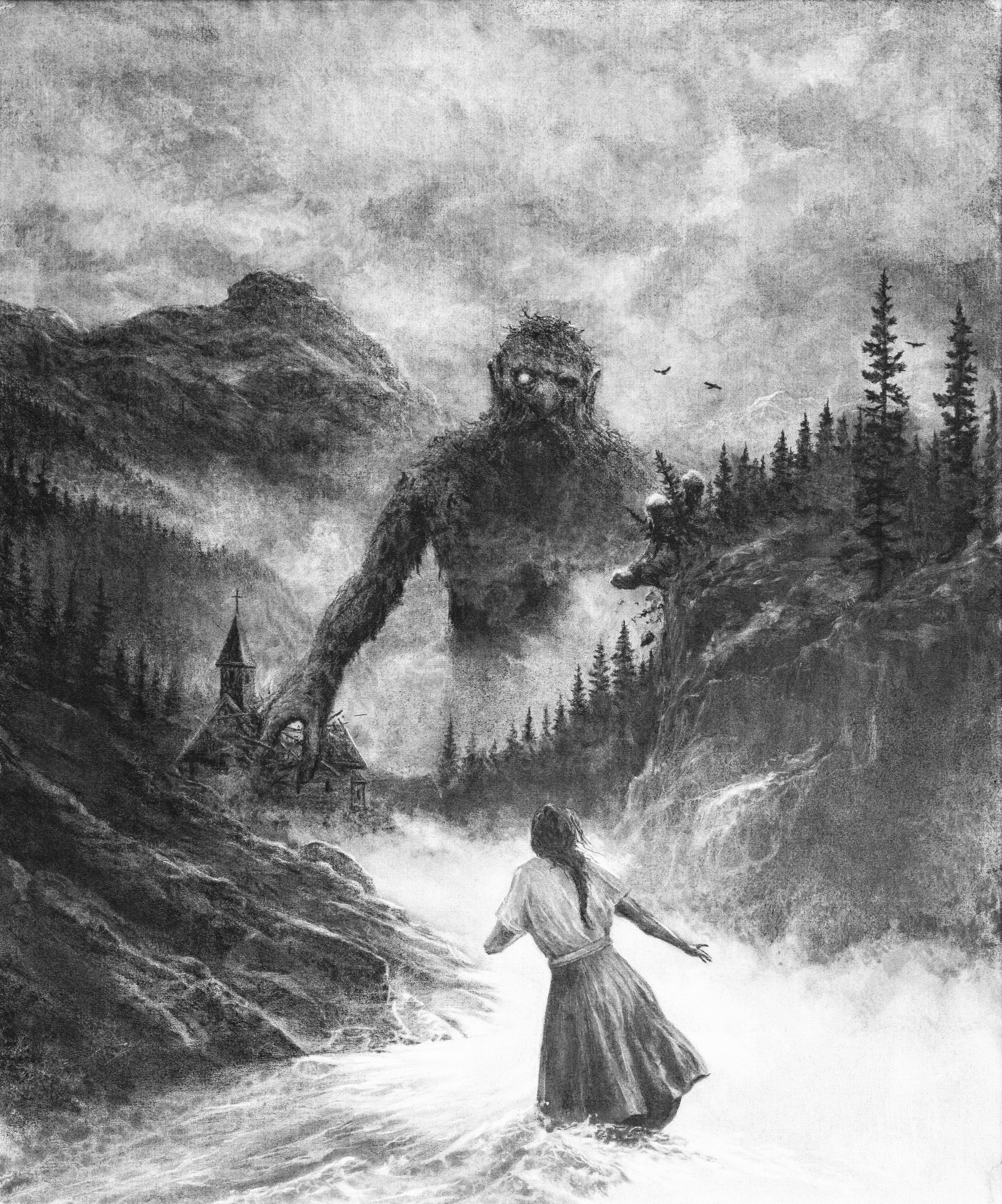 Dette verket er utført i kull på bomullslerret og trykkes i forbindelse med lanseringen av Troll 2. Motivet viser et monumentalt troll som reiser seg fra et dramatisk, norsk landskap. I forgrunnen står en kvinne i møte med naturkreftene, plassert i direkte kontrast til det enorme og ur-gamle vesenet.